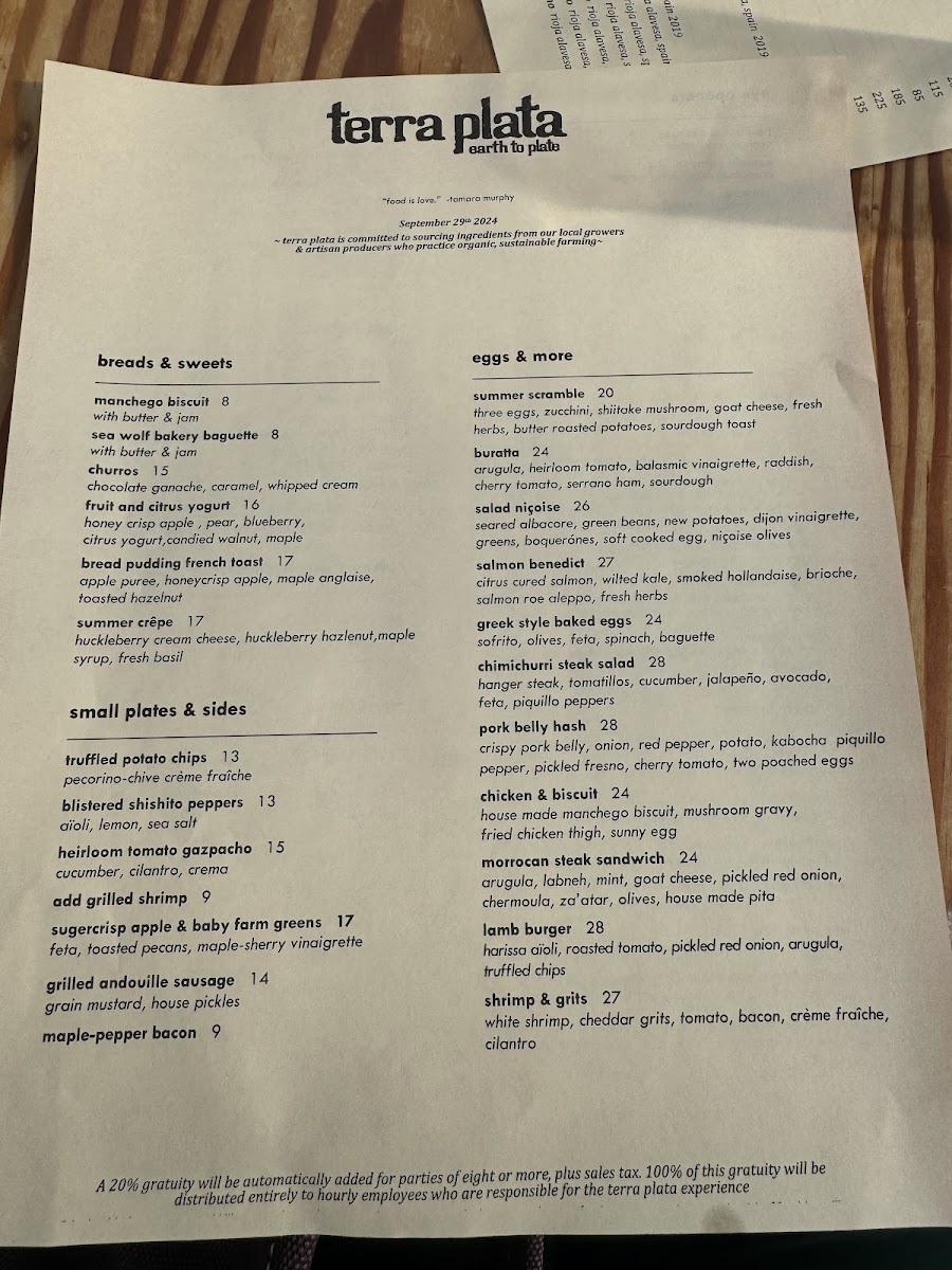 The charm of Terra Plata lies in its ability to create unforgettable meals that leave guests on a foodie high. Customer 'Alexander Hume' described a dish of biscuits and gravy with fried chicken thigh as life-changing, reflecting the elevated comfort food experience patrons can find at this establishment. This restaurant’s dedication to quality and taste, combined with its inviting atmosphere, certainly make it a must-visit for both locals and visitors alike.